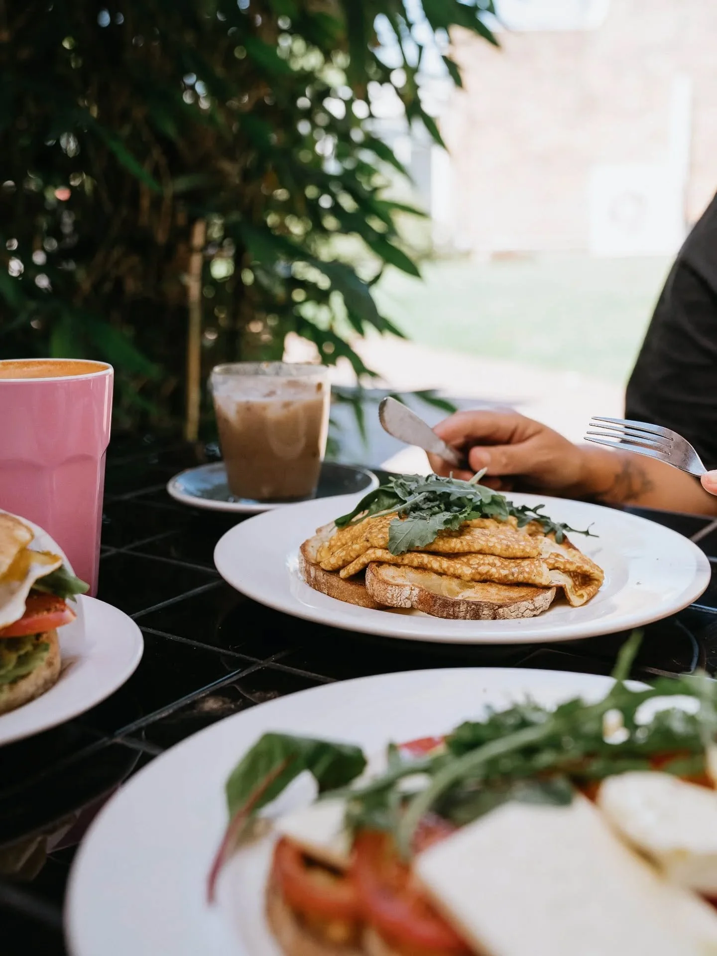 avocado, melted cheese, roast mushroom, roast tomato, fried egg, vegan mayo & local greens on a toasted wholemeal roll